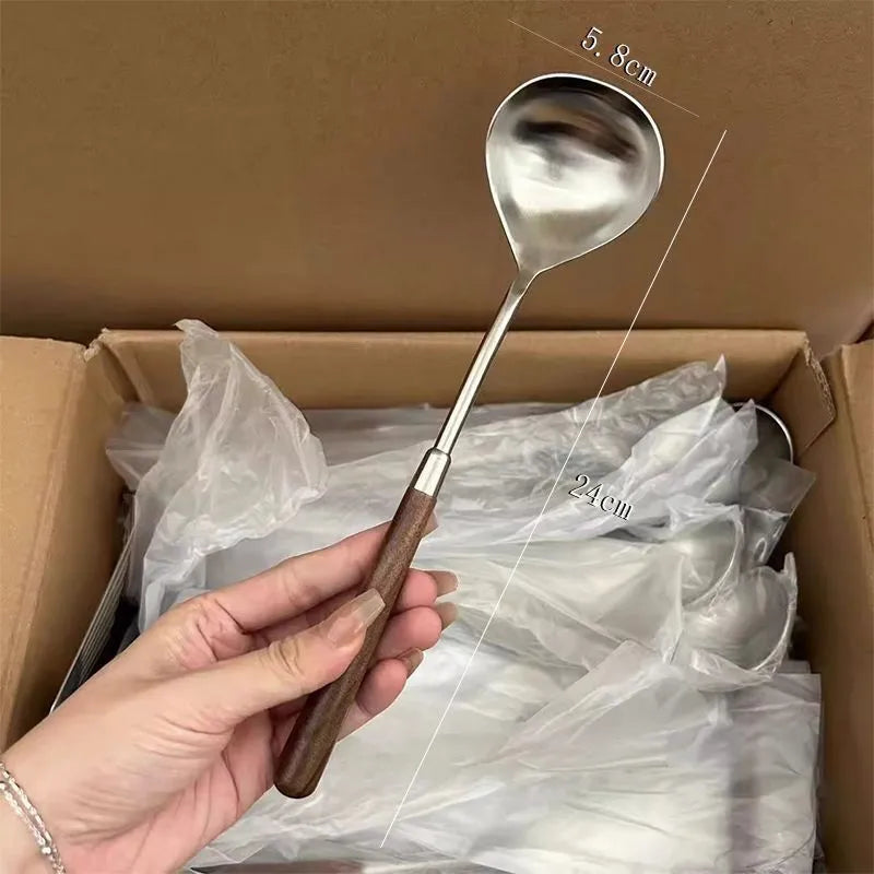 This dessert spatula features a smooth stainless steel serving head and a natural acacia wood handle. Designed for serving cakes, pastries, and desserts, it offers a comfortable grip, balanced weight, and a polished surface for easy, clean serving. Lightweight, durable, and elegant, it adds a warm, minimalist touch to any dessert table or kitchen.
