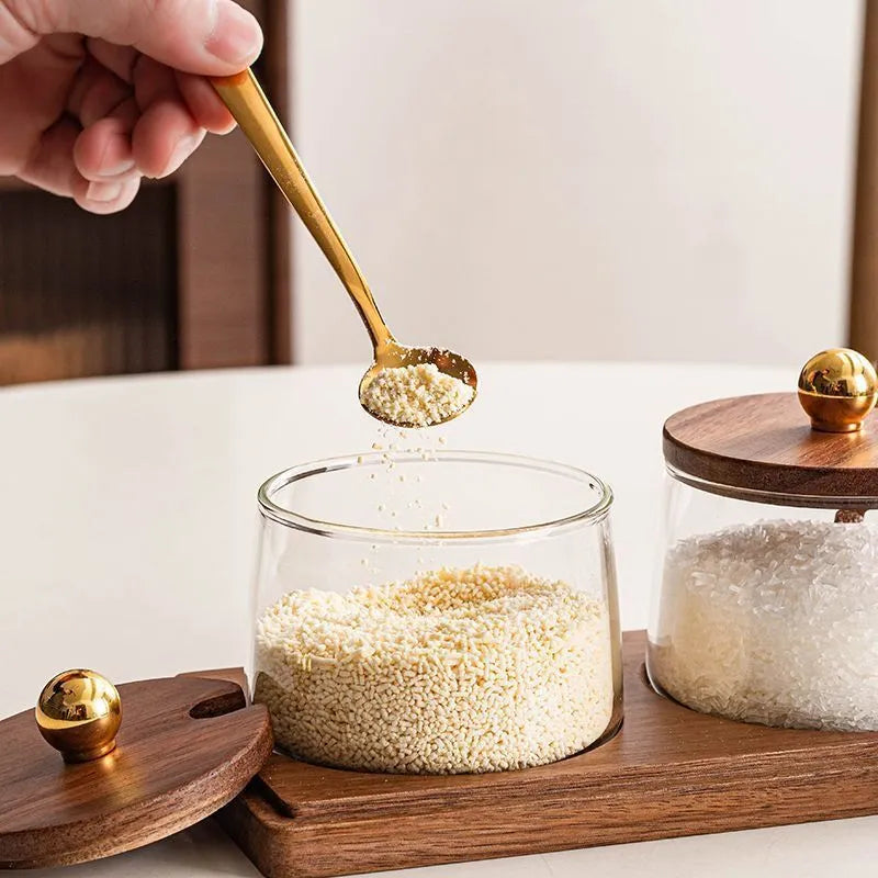 The Glass Wooden Spice Set combines clean design with everyday practicality. Featuring clear glass containers paired with natural wooden lids, this set offers an elegant and organized way to store spices, seasonings, or dry ingredients.